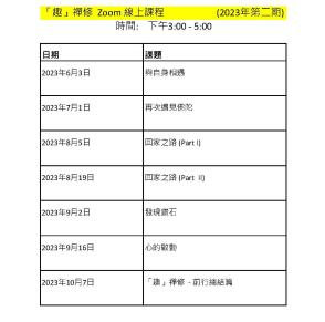 2023「趣」禪修 Zoom 線上課程日期 (第一階段)