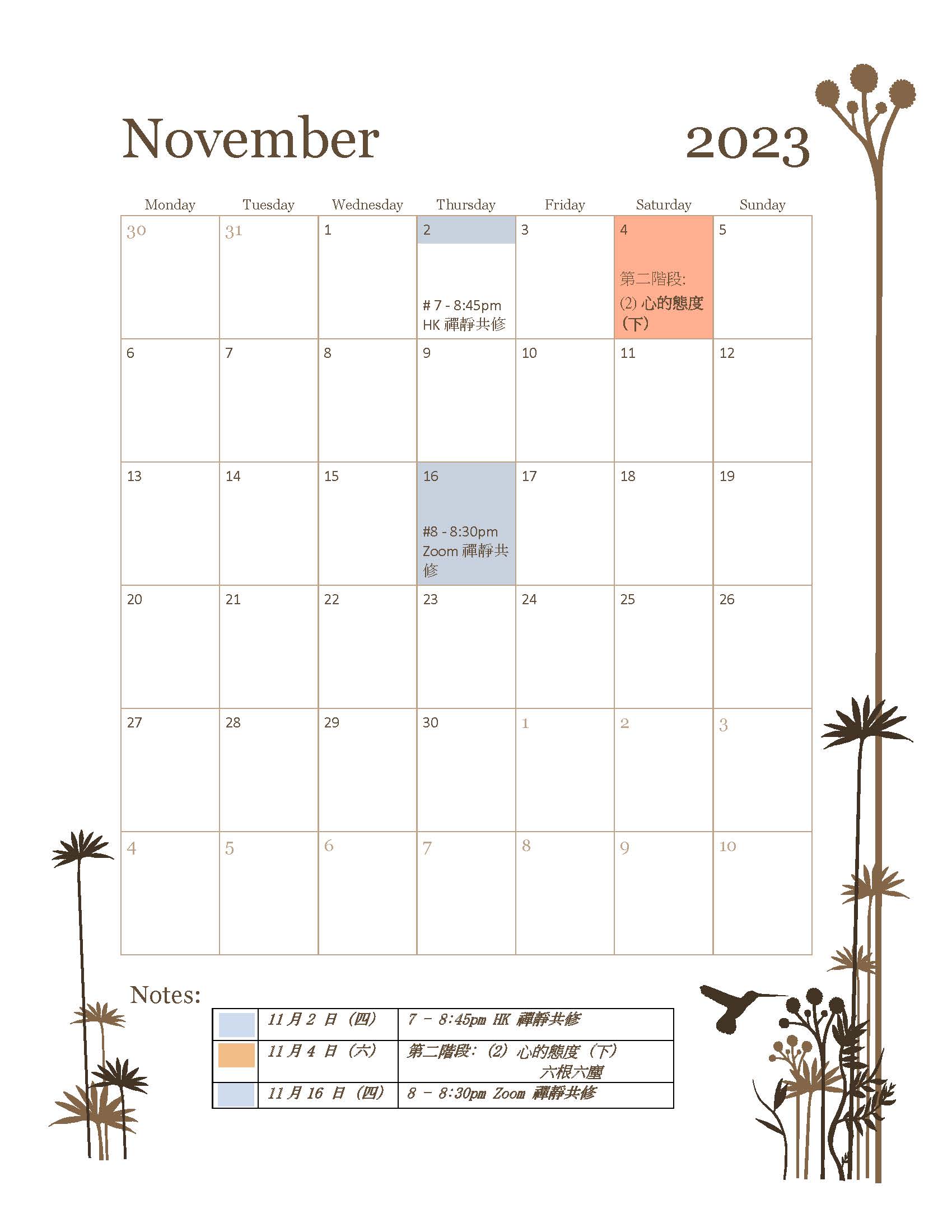11月份行事曆